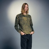 スプレー加工を施した風合いが特徴的なクルーネックセーター。