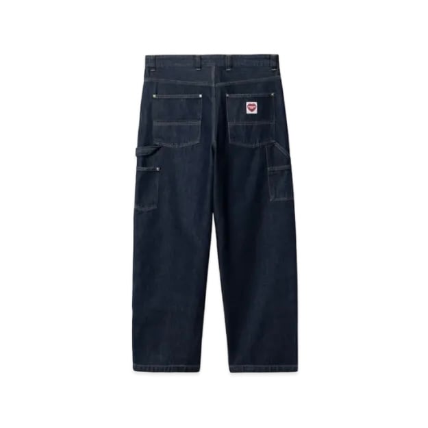 クラシックなワークパンツのシルエットからインスピレーションを得たナッシュダブルニーパンツは、11ozのデニム生地を使用し、シルエットはゆったりとしたルーズフィットを採用。膝のダブルレイヤー、トリプルステッチ、ツールポケット、ハンマーループ、ジップフライ仕様、バックポケットのハートラベルがポイント。バックポケットにあしらわれたハートラベルがブランドの伝統を表しています。