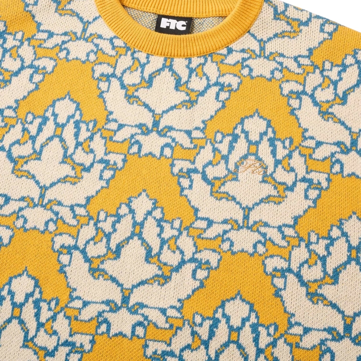 コットン/アクリル糸をダブルジャガードで編み立てたオリジナル総柄セーター。 左胸に刺繍。