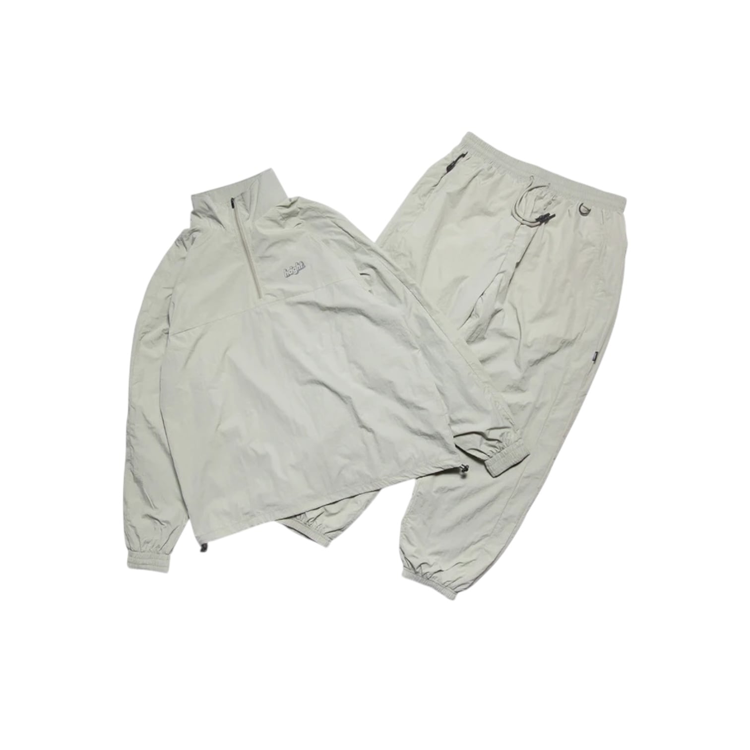 柔らかなナイロン生地が生み出す自然なシボと軽やかな風合いが特徴。ゆとりを持たせたシルエットに、裾はすっきりとまとまるジョガー仕様で、動きやすさも◎。スポーティとラフを兼ね備えたデザインで、同素材のハーフジップジャケットとのセットアップもおすすめ。