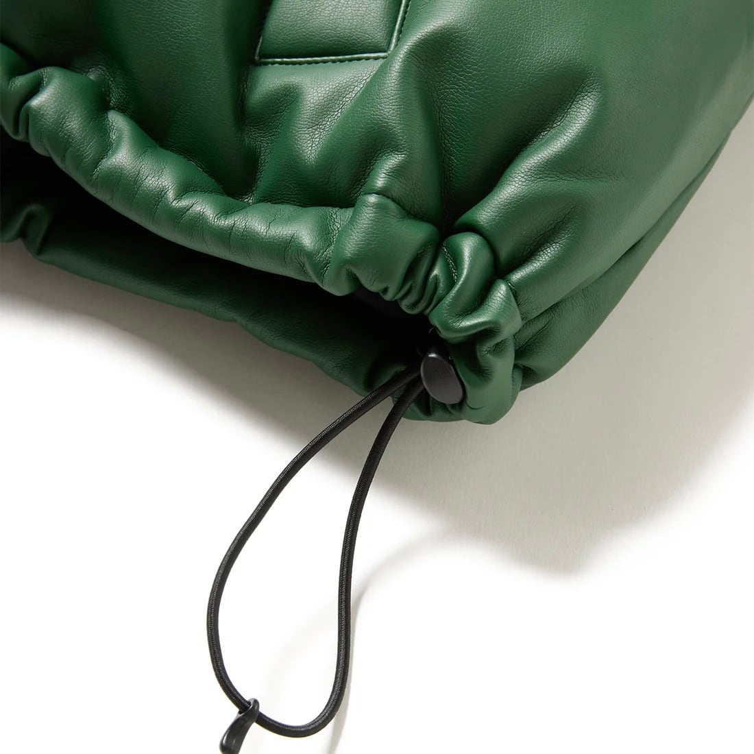 FIRST DOWNのアイコンであるバブルダウンジャケットにフェイクレザーを採用し、無骨さと洗練さを両立したモデル。ベーシックなルックスに重厚感と都会的なムードを漂わせる。計算されたボリューム感の立体シルエットは、着るだけでスタイルが完成する存在感を演出。