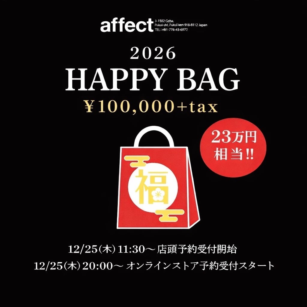 **affect 2026 HAPPY BAG(福袋)**がオンラインストアに登場。