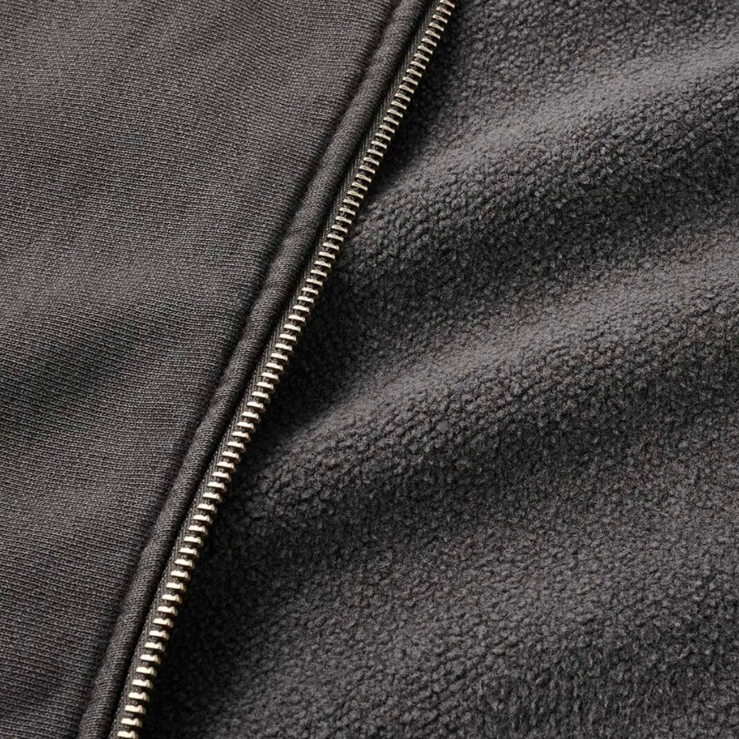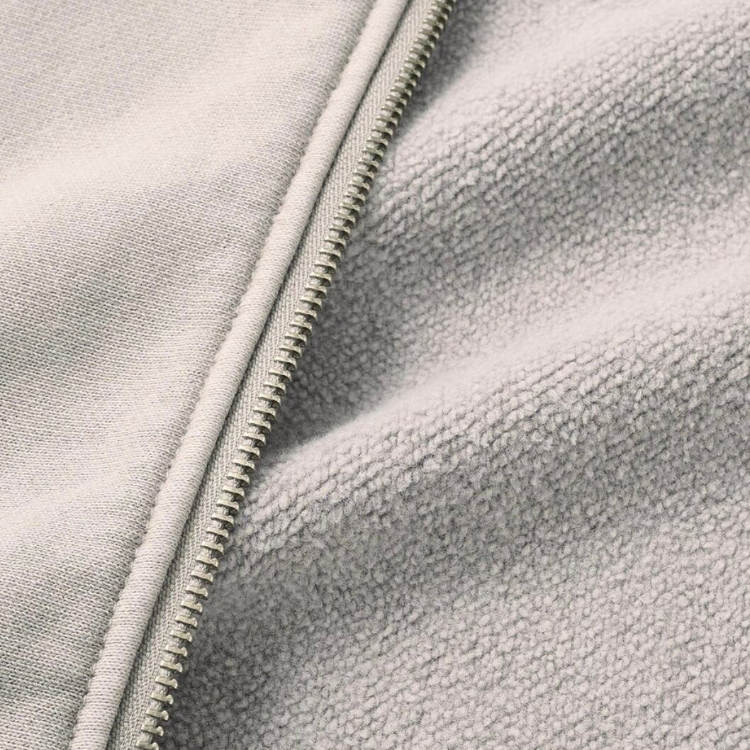 オリジナルのヘビーオンス裏起毛スウェット生地を使用したジップアップフーディー。