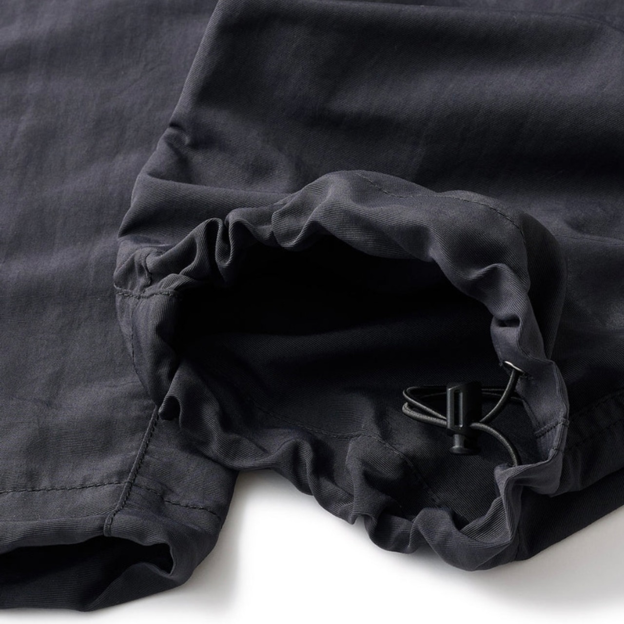 ベルトにブランドネーム。裾にドローコード。