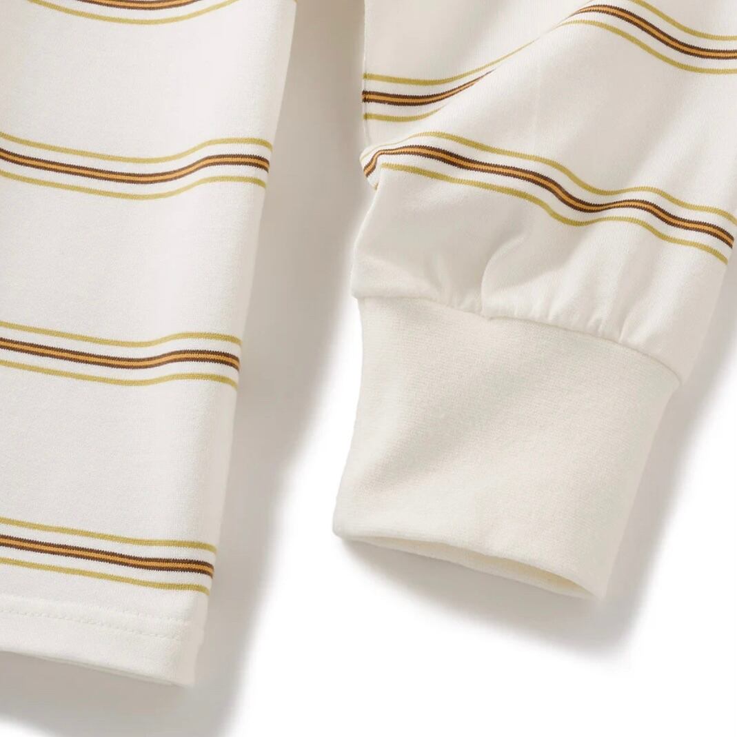 肉厚でハリのある度詰めコットンで編み立てたオリジナルストライプを使用したロングスリーブTシャツ。