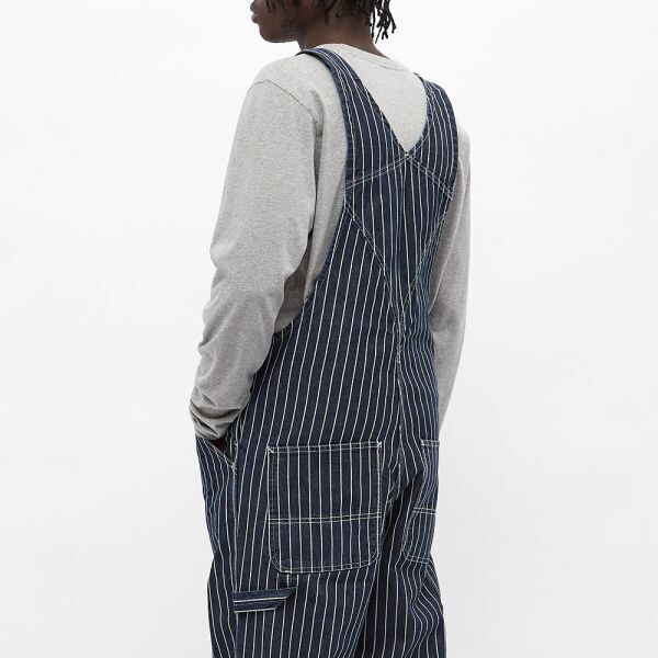 Carharttの代名詞とも言えるビブオーバーオールのヒッコリーストライプバージョンです。Carharttらしさを感じさせるステッチ3本、ツールポケットやハンマーポケットも備えており、実際の作業現場でもしっかり使える機能性です。CarharttのベースであるWork Styleに忠実なディテールの一着です。リサイズなどを施していない、昔ながらのシルエットの一本。同時に展開しているジャケットとのセットアップ着用も可能です。