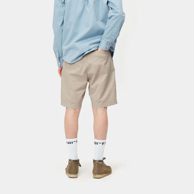 5.5ozのストレッチポプリン生地を使用した涼しげなチノショーツ、グランドショーツです。 シルエットはリラックスフィット、レギュラーウェスト、フロントにはプリーツ入り。ややふっくらとしながらも太過ぎない綺麗なシルエットがポイント。ジップフライ仕様。いろいろ使い回しの効く万能なショーツです。