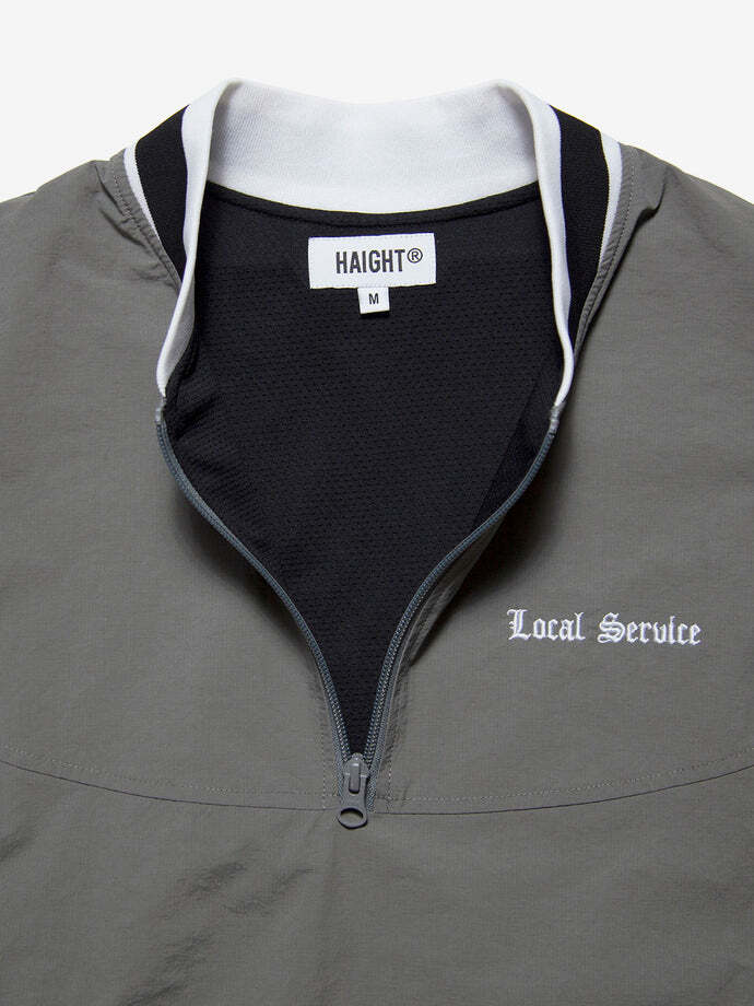 カスタムカーショップのチームウェアをイメージし、デザインされたハーフジップジャケット。胸元の曲線の独特な切り返しはダービージャケットのディティールを融合させたもの。冷える日には、インナーにフーディの合わせもおすすめ。メッシュの裏地付き。