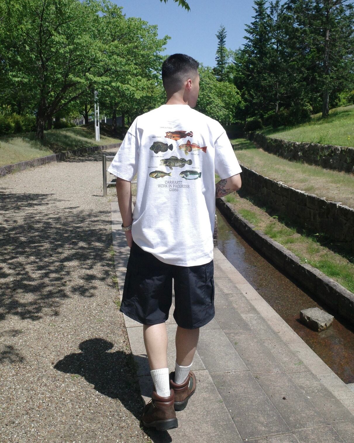 S/SフィッシュTシャツは、軽量コットンジャージーからルーズフィットで作られています。グラフィックプリントは前面と背面に表示されます。
